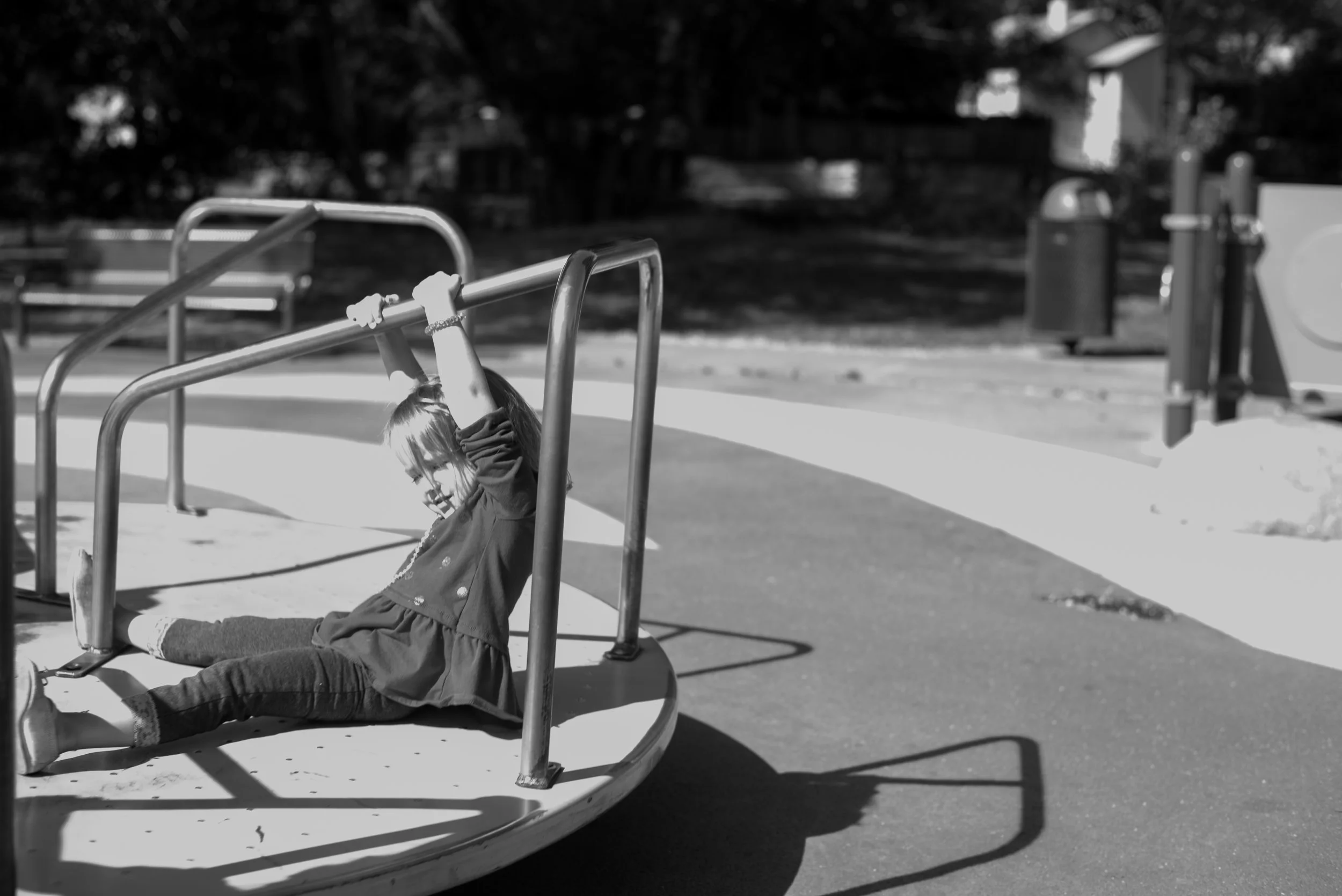 Her favorite part about this park was the merry-go-round that is in between the small and large playground. This is a popular fixture at this playground but the three times we have been there the other kids have been nice to the smallest of kiddos who want to ride.